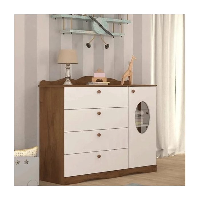 Cômoda Infantil 4 Gavetas 1 Porta Encanto Top Savana/branco - Permobili