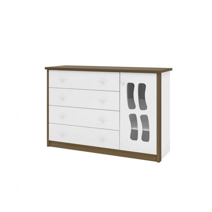 Cômoda Infantil 4 Gavetas 1 Porta Letícia Phoenix Baby Branco/Carvalho Nice