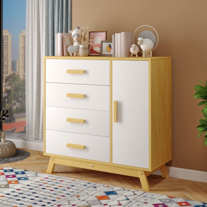Cômoda Infantil 4 Gavetas 1 Portas Montessoriana Dudu Rodmóveis Natural/Branco