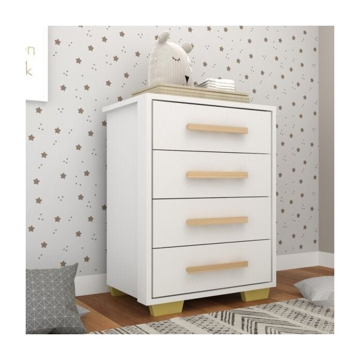 Cômoda Infantil 4 Gavetas Puxador Perfil Sweet Multimóveis Branco/Natural