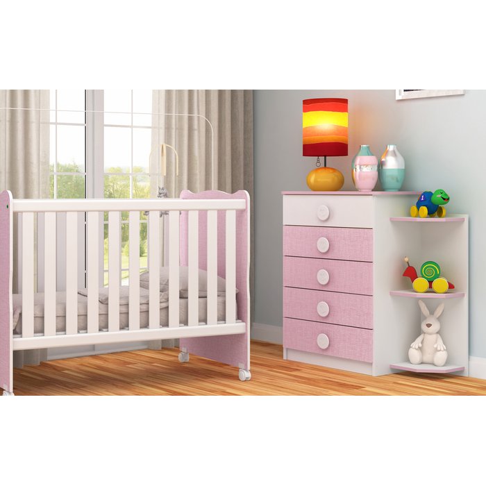 Cômoda Infantil 5 Gavetas Pipa D159 Branco/Rosa