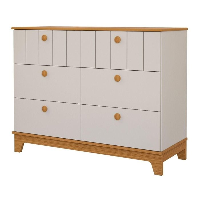 Cômoda Infantil 6 Portas Mdf Puxadores Madeira Maçica Biscoito Permobili Off White/nature
