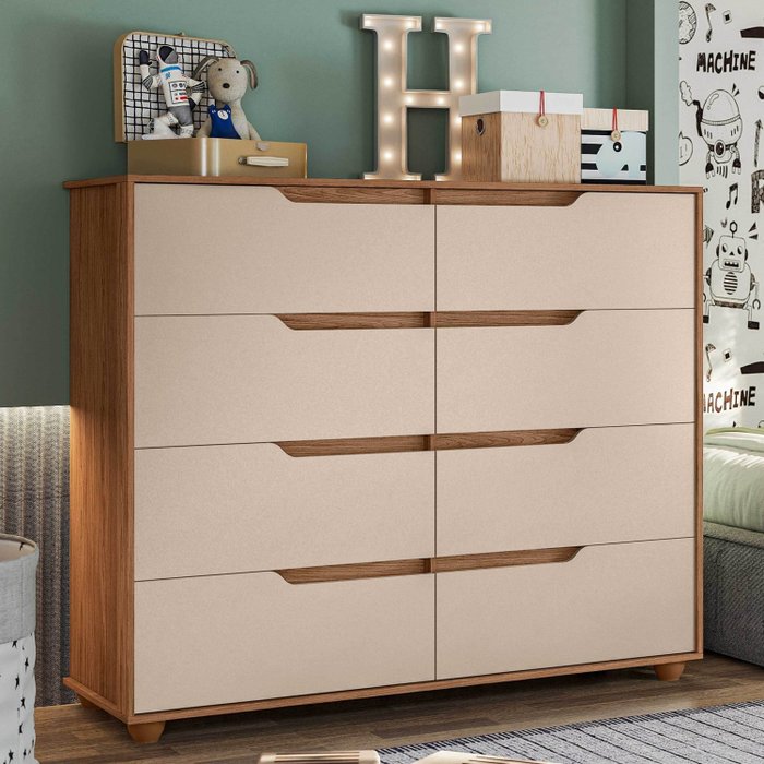 Cômoda Infantil 8 Gavetas Circus Cinamomo/Off White
