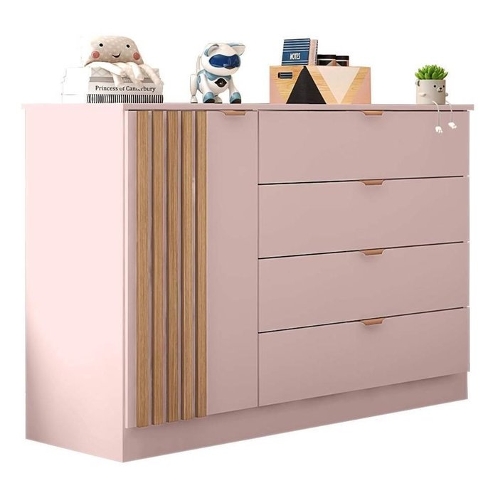 Cômoda Infantil Ayla 1 Porta e 4 Gavetas Rosê Acetinado - Phoenix Baby