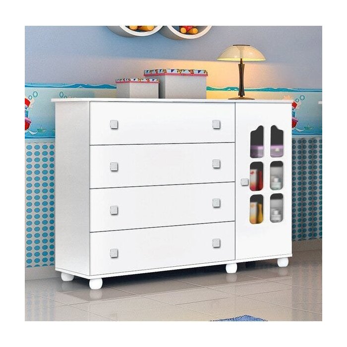 Cômoda Infantil Inafantil 4 Gavetas 1 Porta Lívia Planet Babys Branco