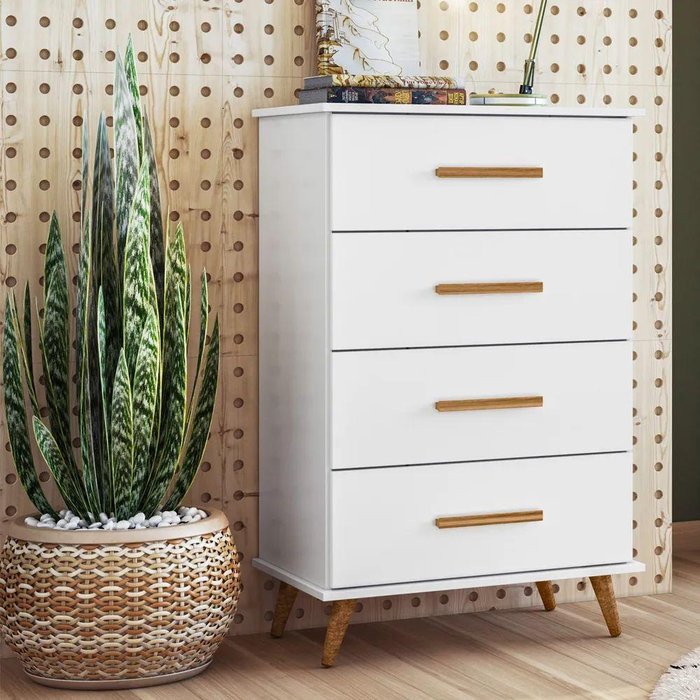 Cômoda Infantil Lunare Retrô 4 Gavetas Para Quarto De Bebê Cor Branco Acetinado - Peternella Móveis
