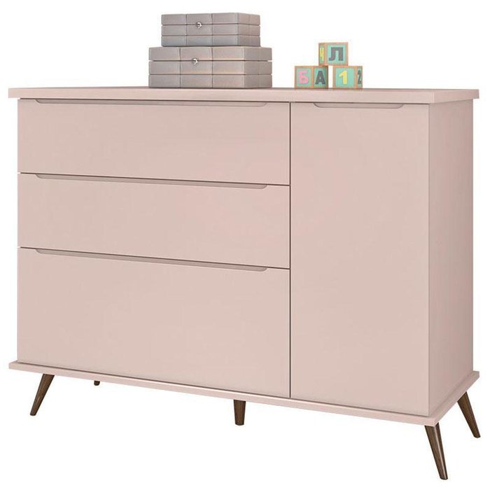 Cômoda Infantil Retro Alice com Porta Rosa Acetinado - Phoenix Baby