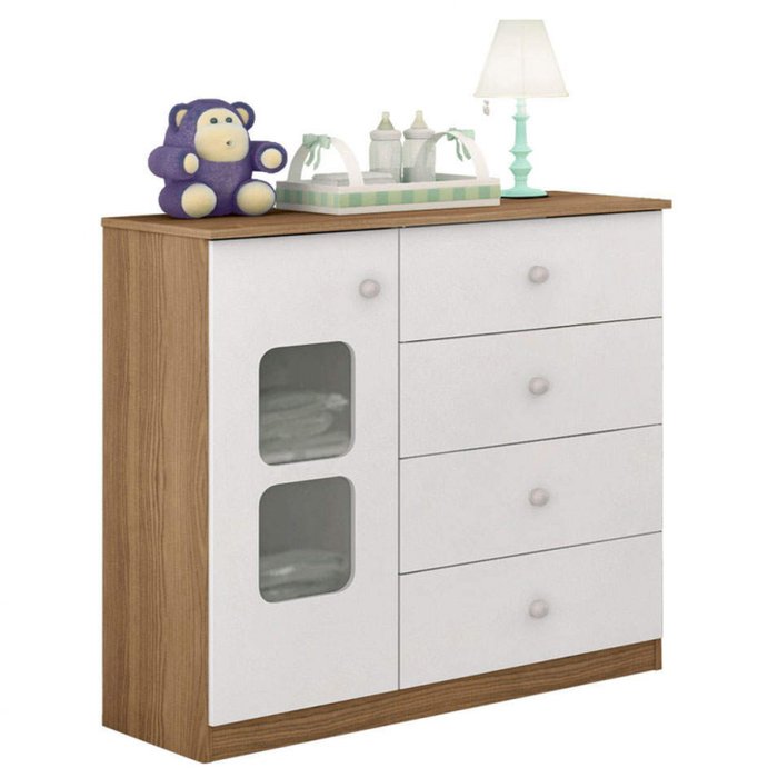 Cômoda Infantil Xodó 4 Gavetas com Porta Móveis Estrela Branco/Almendra