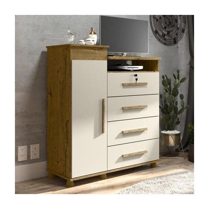 Cômoda Juma 4 Gavetas 1 Porta Nature / Off White - Patrimar Off White