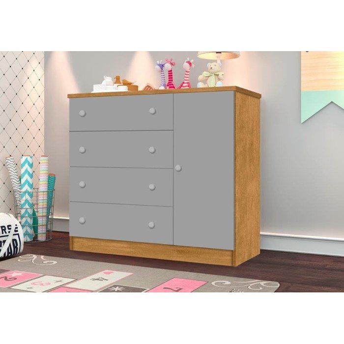 Cômoda Laiza Infantil 4 Gavetas Com Corrediças Metálicas + 1 Porta Com Puxadores na Cor do Produto C