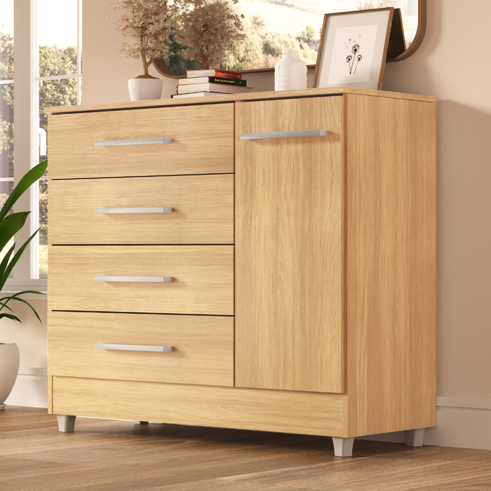 A Cômoda Laura combina praticidade, versatilidade e beleza em um único móvel. Com 4 gavetas espaçosas e 1 porta com prateleira interna, ela oferece diversas possibilidades de organização para roupas, acessórios e objetos pessoais – ideal para manter o ambiente sempre arrumado.