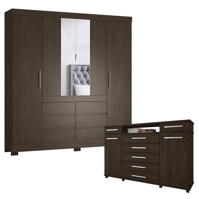 Cômoda London e Guarda Roupa Casal Cádis Ébano - Demóbile