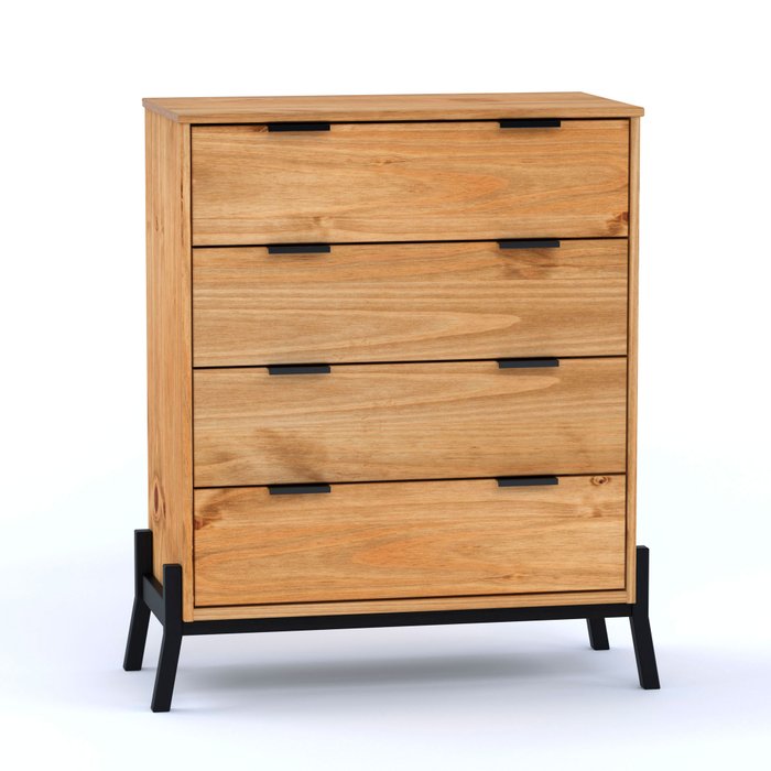 Comoda Madeira Macica 04 Gavetas Cera/Preto Mobilistore CS5140-02