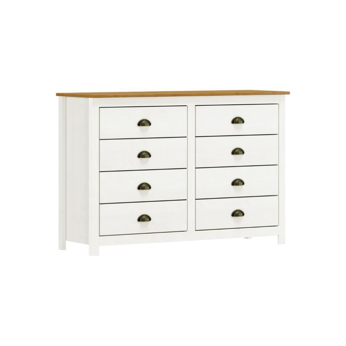 Cômoda Madeira Maciça 8 Gavetas Quarto Closet Boho Rústico:branco Branco/Marrom