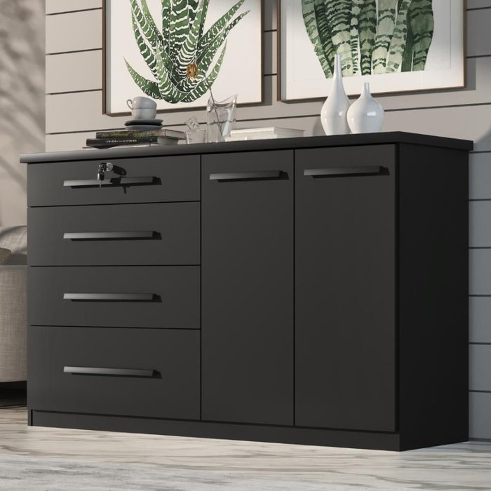 Comoda Mariah 4 Gavetas 2 Portas com Chave Onix Ônix