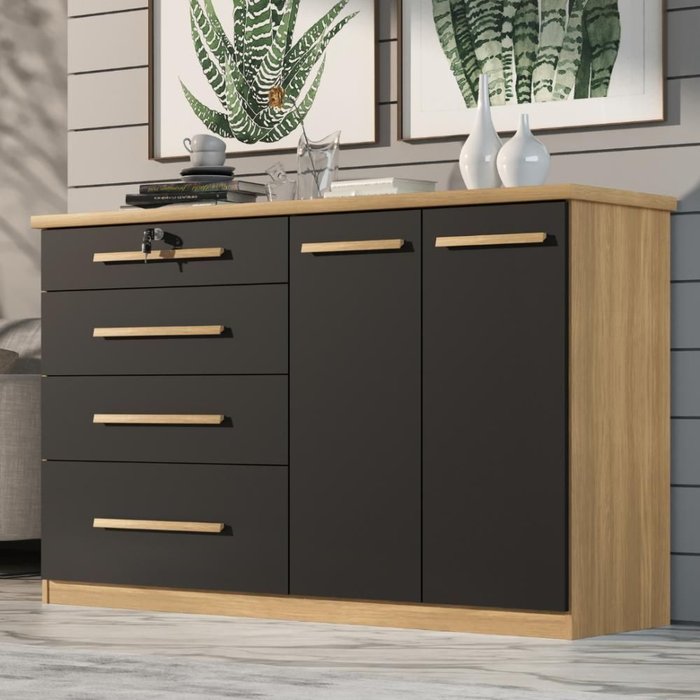 Comoda Mariah 4 Gavetas 2 Portas com Chave Teka/onix