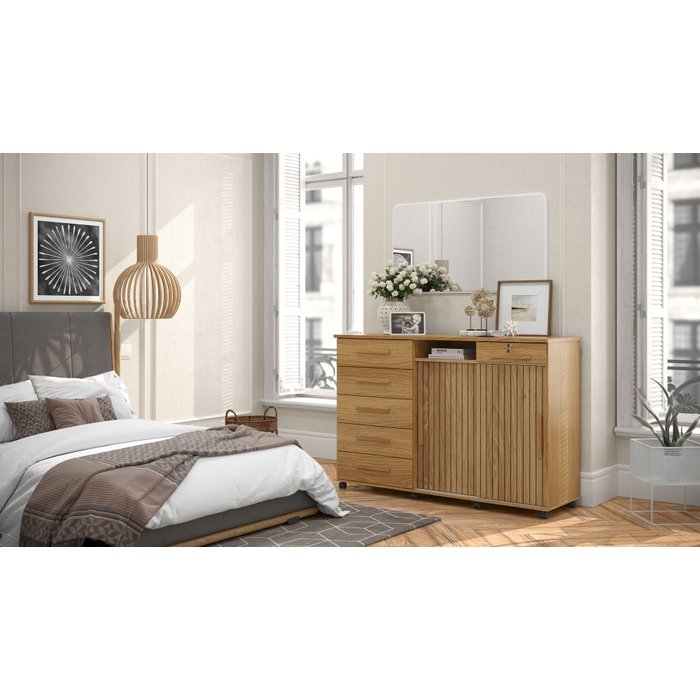 Cômoda Master 2020 Lukaliam 6 Gavetas Cabideiro Rodízios Gaveta com Chave Espelho 1,76m:freijó