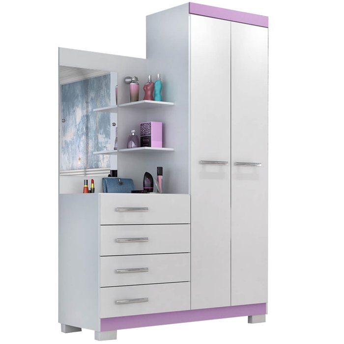 Cômoda Melissa 4 Gavetas 2 Portas com Espelho Acp Cor Lilás