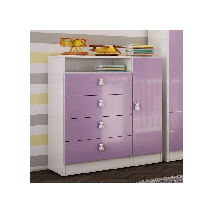Cômoda Meu Fofinho Com 1 Porta e 4 Gavetas Lilás - Art In Móveis - Lilás Lilás