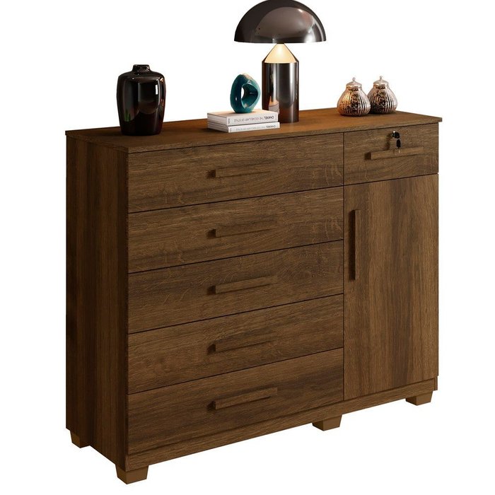 Comôda Milão 6 Gavetas e 1 Porta Benetil:imbuia Imbuia