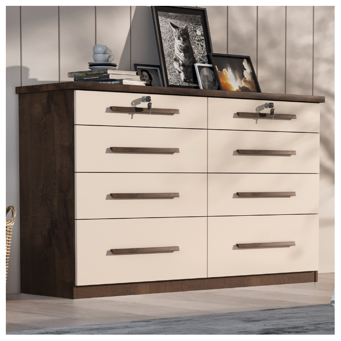 Comoda Monza 8 Gavetas Chocolate/Offwhite