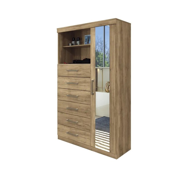 Comoda Multiuso 1 porta 6 gavetas Maraba com Espelho Santos Andira Atacama