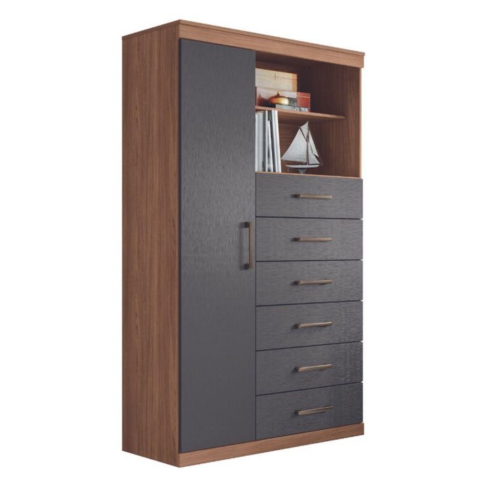Cômoda Multiuso 6 Gavetas 1 Porta Suzhou Jatobá Grafite Jatobá/Grafite