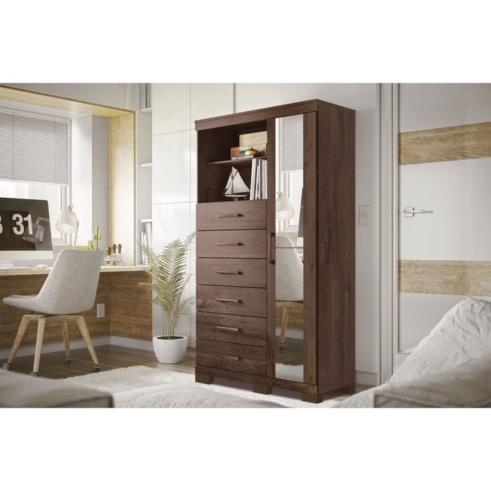 Cômoda Multiuso Marabá 1 Porta 6 Gavetas com Pés e Espelho Santos Andira