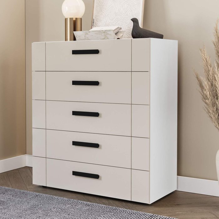 Cômoda Organizadora 90cm com 5 Gavetas 240840 Linha Lisboa Politorno Móveis Branco/Creme