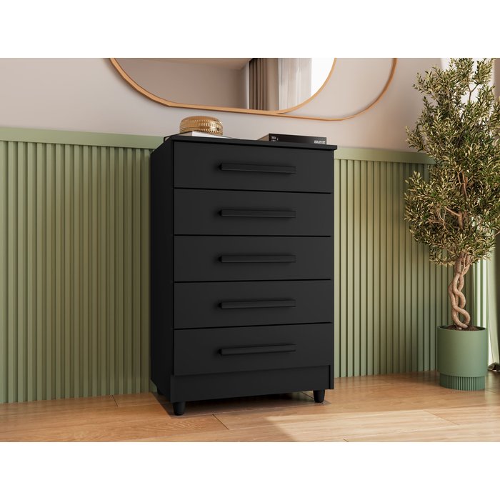Cômoda Organizadora Multiuso Paola para Quarto 5 Gavetas - Preto