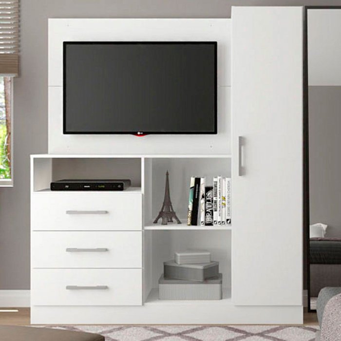 Cômoda Painel Camarim Painel 01 Porta 03 gavetas 149x173x43 Cm Branco 1045 MDP - PRIME