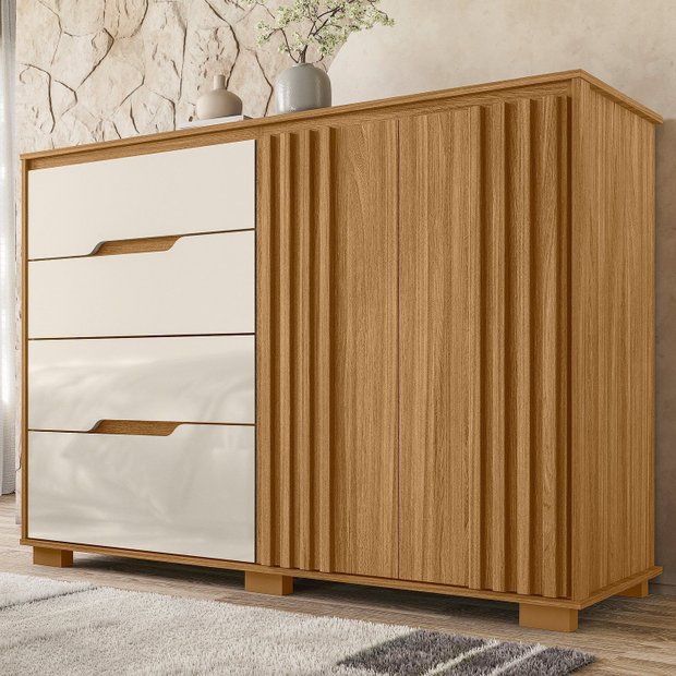 Cômoda para Quarto 4 Gavetas e 2 Portas Texas Freijó/Off White