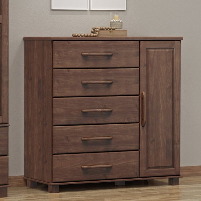 Cômoda para Quarto 5 Gavetas e 1 Porta Madeira Maciça Ouro Café