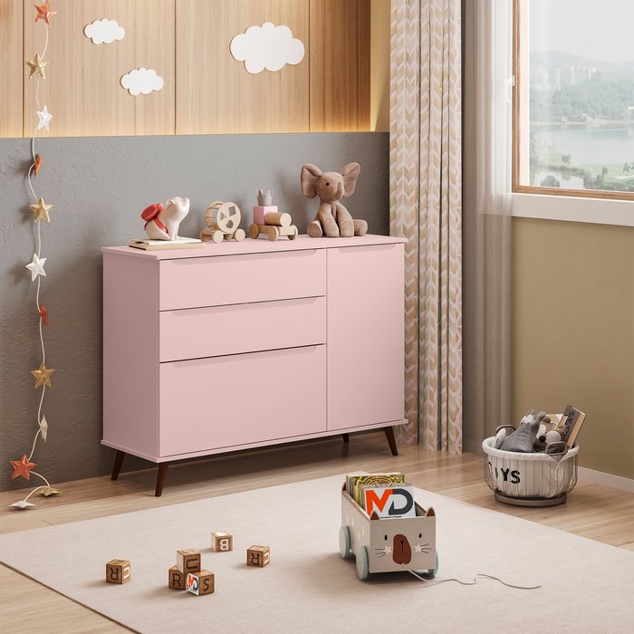 Comoda Para Quarto De Bebe Feminino Rosê Dora Rosê