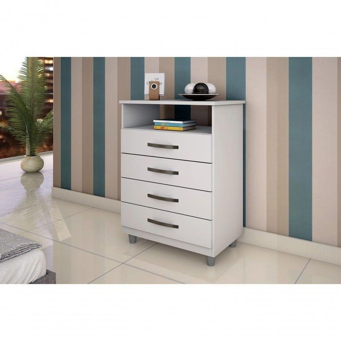 A cômoda Paris é o móvel que faltava para você mobiliar o seu lar. A peça possui 4 gavetas com espaço suficiente para colocar as suas roupas e acessórios. A cor neutra proporcionam uma decoração elegante. Prática, bonita e indispensável.