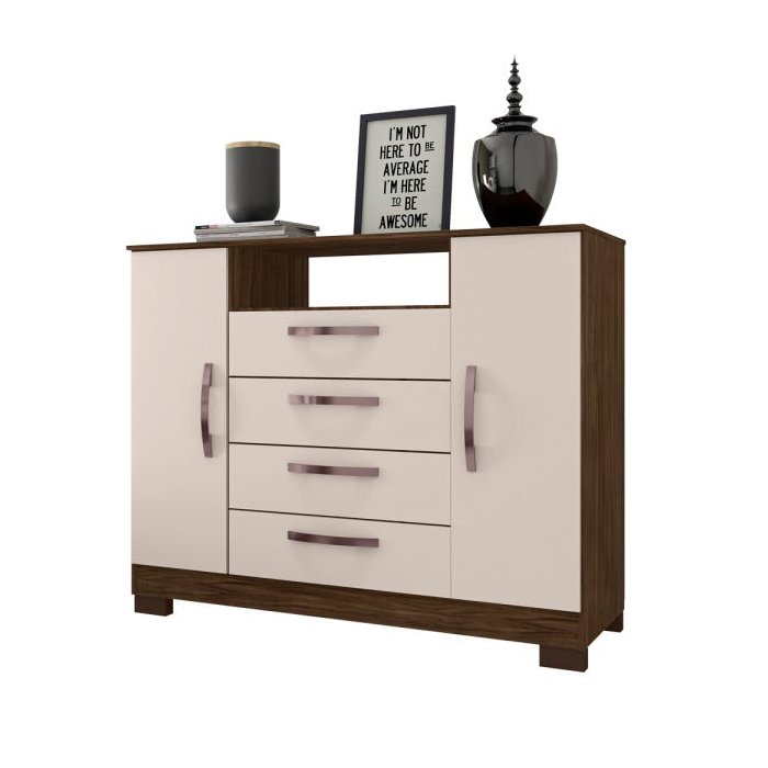 Cômoda Rack 2 Portas 4 Gavetas Turim Teka Champagne Clique Chique