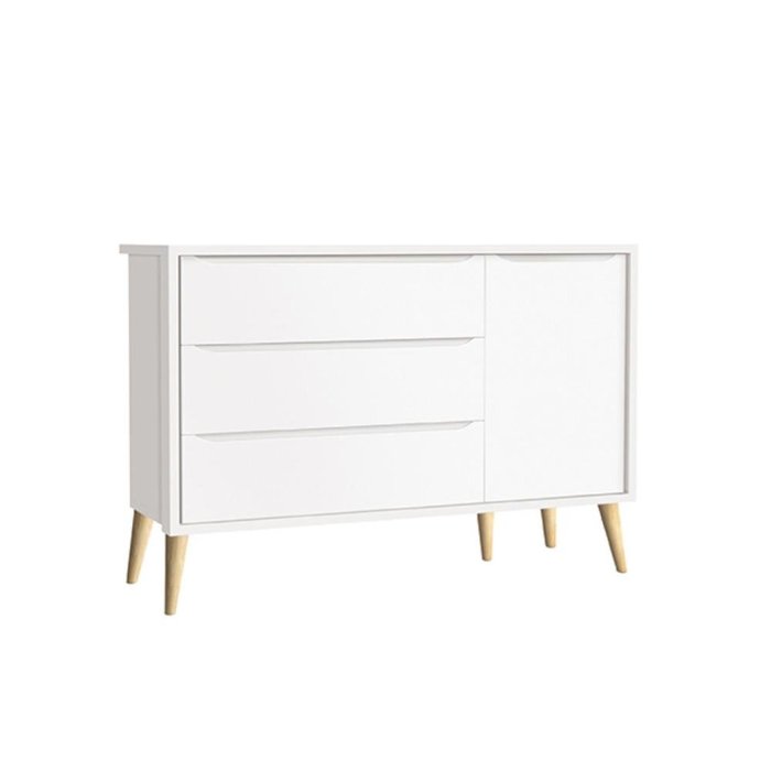 A Cômoda Theo da Reller conta com um design retrô, ideial para compor o quarto do bebê.