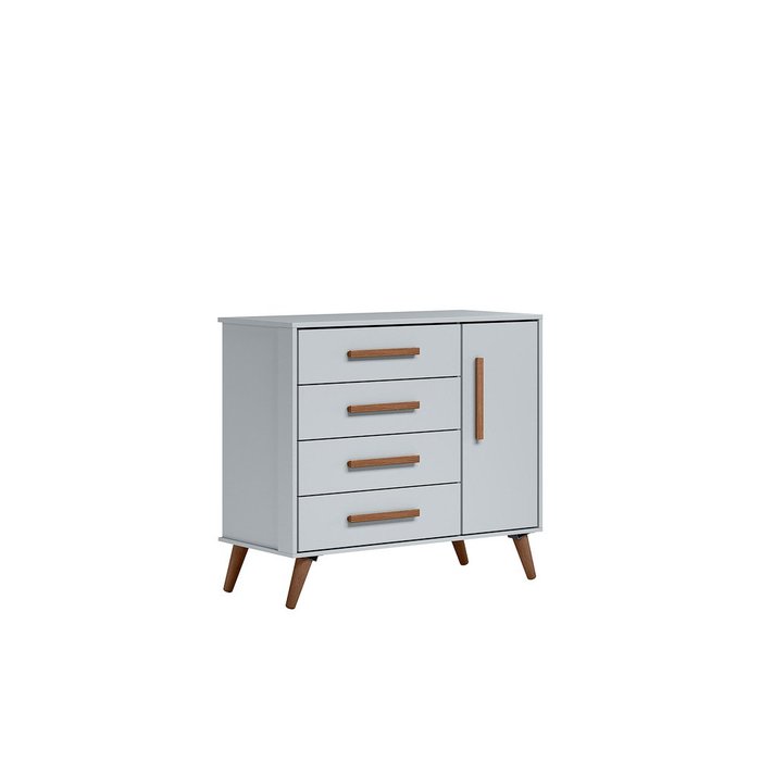 Esta cômoda foi feita para quem procura um móvel funcional e espaçoso para o quarto do bebê. Possui quatro gavetas e uma repartição de sapateira, proporcionando mais organização para vestuário e demais objetos.