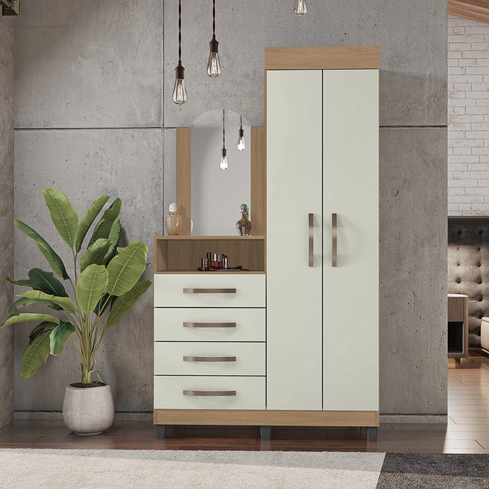 Cômoda Roupeiro 4 Gavetas 2 Portas Lion Cacau/Off White