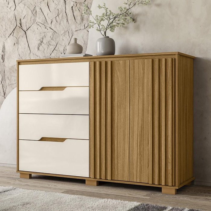 Cômoda Sapateira 02 Portas 04 Gavetas Texas Freijó Off White Moval