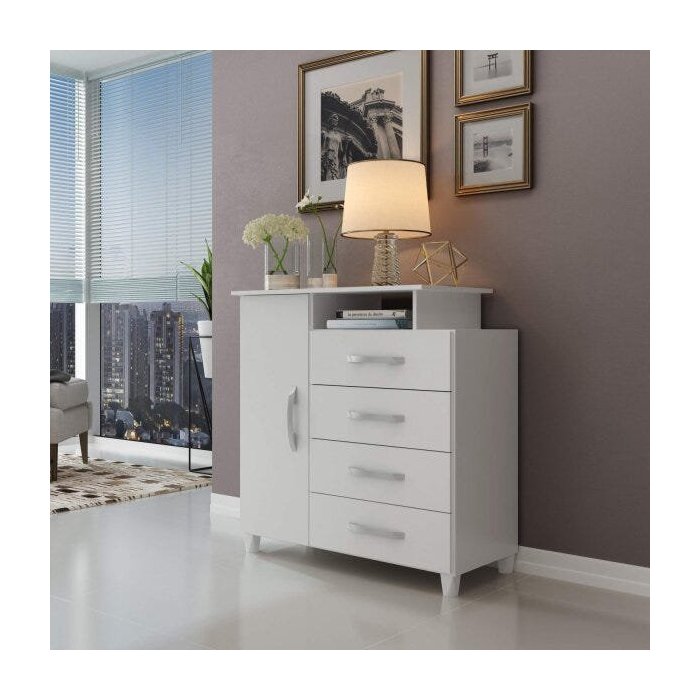 Cômoda Sapateira 1 Porta 4 Gavetas e Nicho Londrina Espresso Móveis Branco