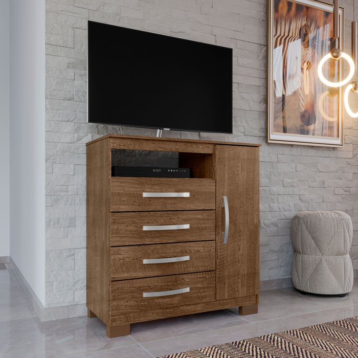 Apresentamos a Cômoda Sapateira 1 Porta 4 Gavetas Itapema.