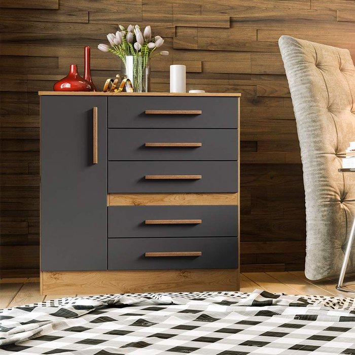 Esta cômoda, feita em MDP, possui 5 gavetas com corrediças metálicas e 1 porta com dobradiça de pressão, além de uma prateleira interna. Seu espaçoso interior oferece amplo armazenamento. Os puxadores em MDF agregam um toque de estilo a este móvel prático e funcional.- Produzida em MDP- 5 gavetas com corrediças metálicas- 1 porta com dobradiça de pressão- 1 prateleira- Puxadores em MDF- Excelente espaço internoDimensões do produto: Largura 90 cm; Profundidade 46 cm; Altura 91 cm.Itens Inclusos: 1 cômodaComplexidade da montagem: Média, pode ser montado por mais de uma pessoa e/ou necessite de maior conhecimento para montagem.Recomendações de uso, manutenção e limpeza: Limpar com flanela ou pano macio seco, não utilizar produtos abrasivos, desengordurantes, álcool ou solvente. Não expor o produto diretamente a luz solar e à umidadeGarantia: 3 mesesOBS: Foto meramente ilustrativa, objetos, utensílios e decoração não fazem parte do produto. Manual De Montagem E Instalação