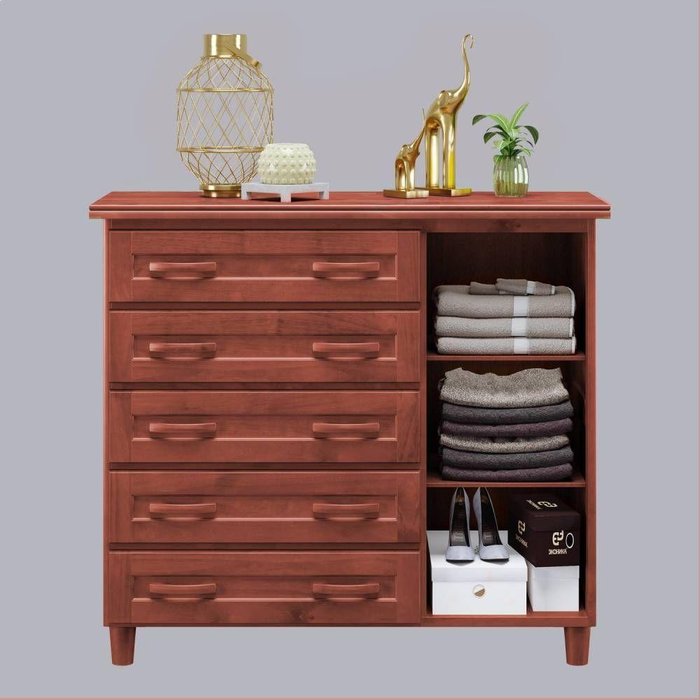 Cômoda Sapateira 5 Gavetas E Porta Em Madeira Para Quarto Mogno - Cavazotto