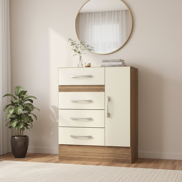 Cômoda Sapateira Grande 4 Gavetas 1 Porta Off White/Castanho