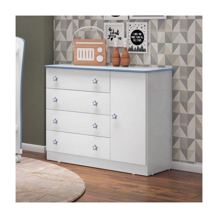 Cômoda Sapateira Infantil 1 Porta 4 Gavetas Doce Sonho Qmovi