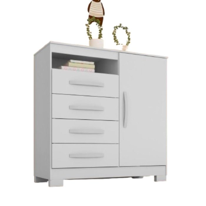 Cômoda Modena com Sapateira e Gavetas para QuartoA Cômoda Modena com Sapateira e Gavetas é a escolha ideal para quem busca organização, praticidade e um design moderno para o quarto. Com quatro amplas gavetas e uma sapateira lateral espaçosa, o móvel oferece excelente capacidade de armazenamento para roupas, acessórios e calçados, mantendo tudo em ordem e de fácil acesso.Seu acabamento em pintura UV confere resistência e durabilidade, além de realçar o visual elegante que combina facilmente com diferentes estilos de decoração. Opções de Cores DisponíveisBrancoBranco com detalhes em RosaBranco com detalhes em Azul Características da Cômoda ModenaEstrutura 100% em MDP;Fundos em HDF 0,3 cm;Acabamento em Pintura UV – com textura TX (sensível ao toque);04 gavetas com corrediças telescópicas (1 par por gaveta, totalizando 04 pares);Sapateira lateral com amplo espaço interno;Design moderno e funcional.