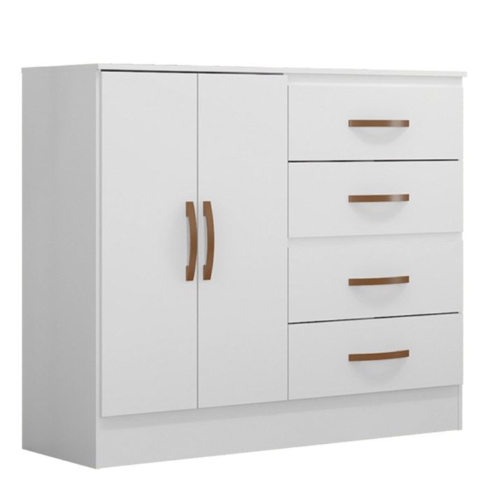 Cômoda Sapateira para Quarto 2 Portas 4 Gavetas Lisa Branco Branco