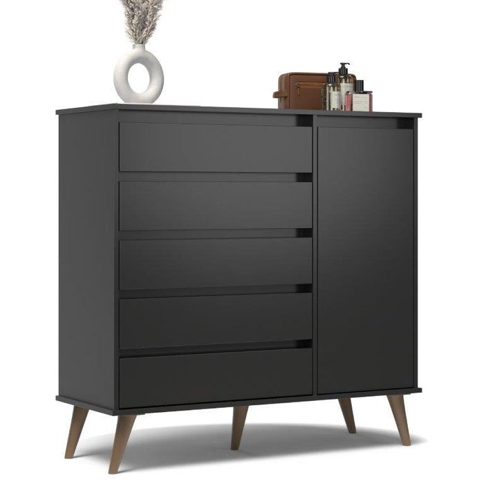 Cômoda / Sapateira RU Modelo Retrô 1 Porta e 5 Gavetas Com Puxadores Internos Com Corrediças Metálic