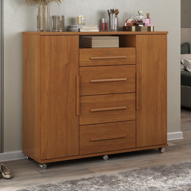 Cômoda Sapateira Versátil 2 Portas 4 Gavetas Cinamomo